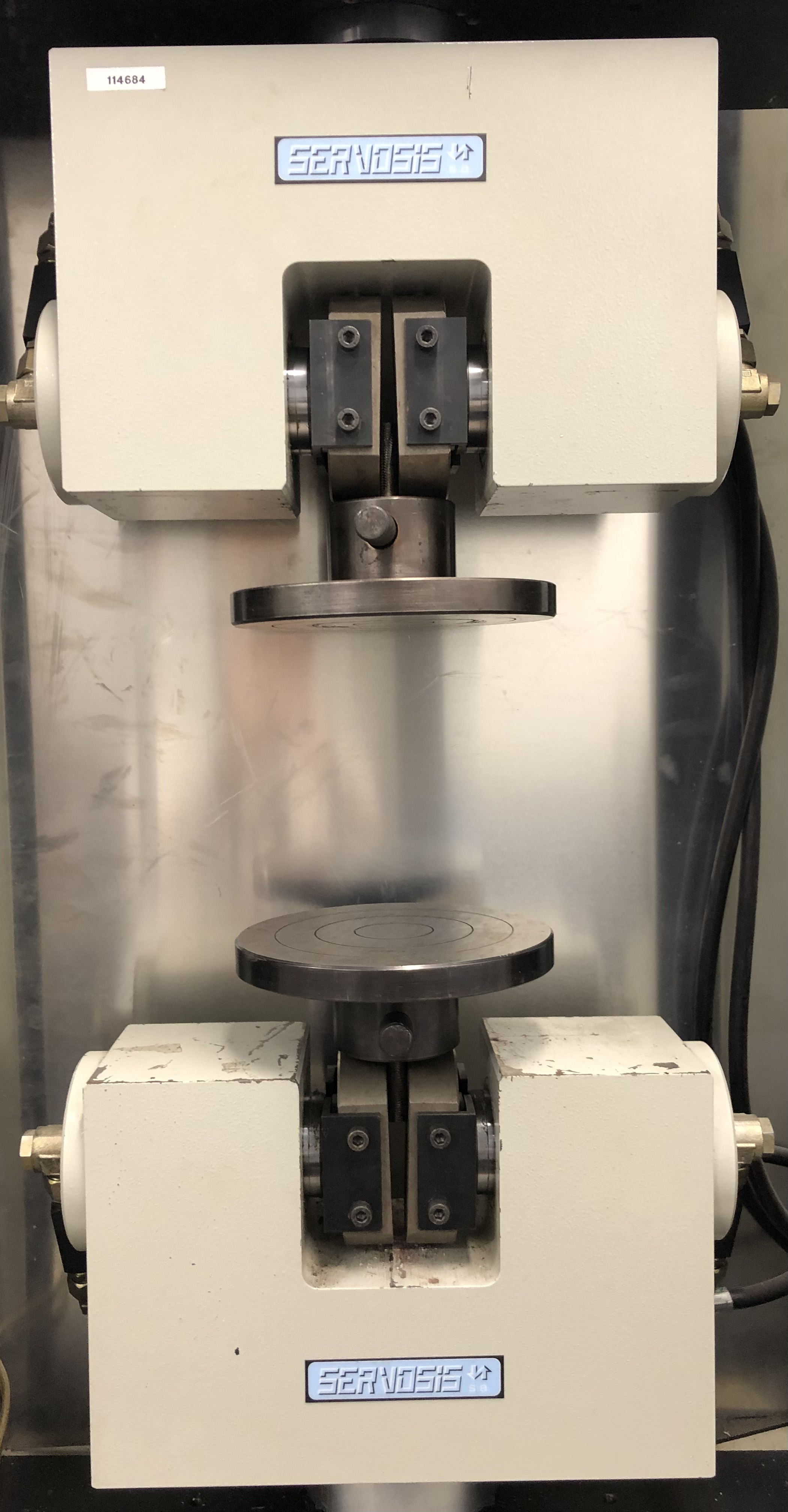 Instron 4204, Máquina husillo de ensayos mecánicos con mordazas y útiles de compresión hasta 50kN con cámara de temperatura.